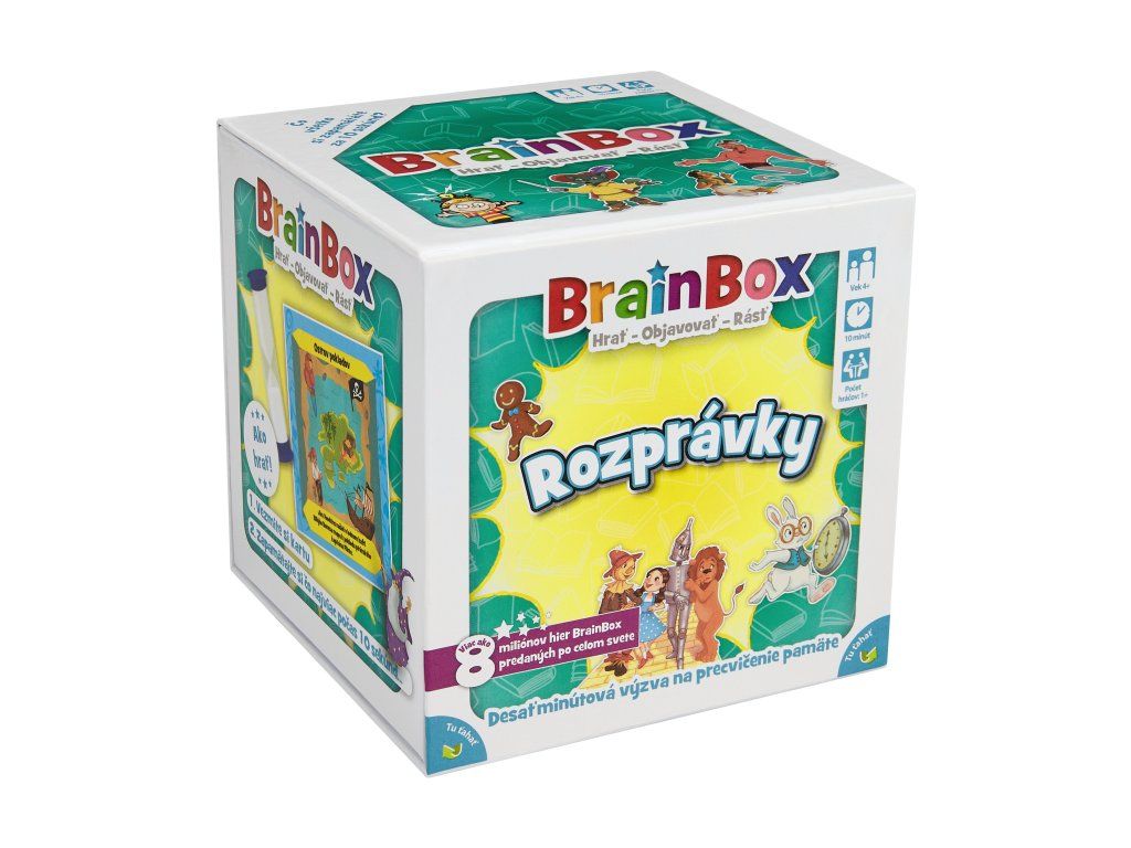 BrainBox je zábavná kartová hra na pamäť a pozornosť, ktorá preverí vaše pozorovacie schopnosti. Čo si zapamätáte za 10 sekúnd? Táto edícia hry o rozprávkach obsahuje kultové postavy a scény z vašich obľúbených rozprávok.