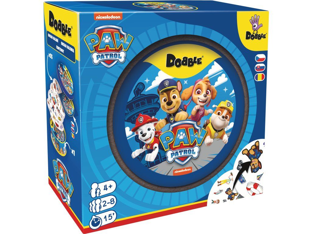Ve hře Dobble PAW Patrol se můžete těšit na své oblíbené postavy ze seriálu Tlapková patrola. Čeká na vás super špion Chase, letecká záchranářka Skye, popelář Rocky, kapitán patroly Ryder a mnoho dalších postav a předmětů, které jistě dobře znáte!