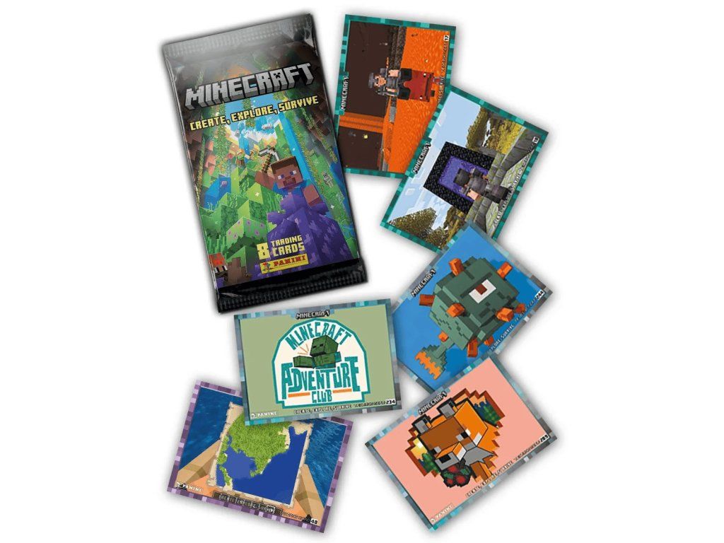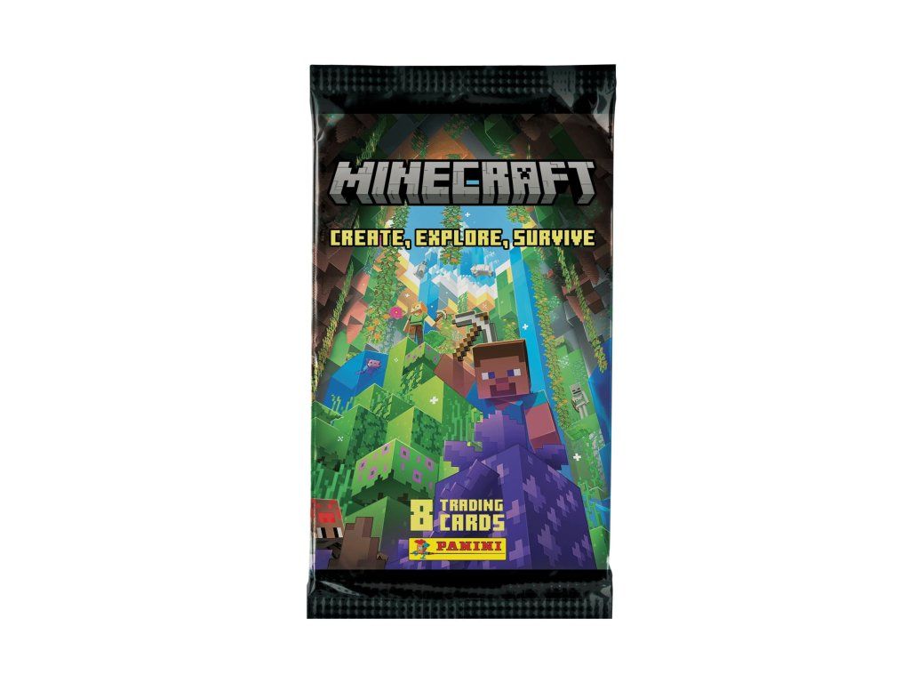 Tento Booster Pack z kolekce Minecraft: Create, Explore, Survive obsahuje 8 náhodných sběratelských karet od Panini. Série je zaměřená na tři hlavní pilíře Minecraftu — tvoření, objevování a přežívání — a přináší širokou škálu postav, mobů, biomů, předmětů a momentů ze hry.